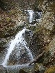 ★大岩のハング滝を過ぎると沢はしばらく河原になり、15分も歩くと再びゴルジュになって小滝を越していくと二俣となる。右はかなりの傾斜の沢で、左は大きな岩壁の8m滝がかかっている。左俣が本流で、右のルンゼを少し登って左の滝壁を登るのが簡単だ。